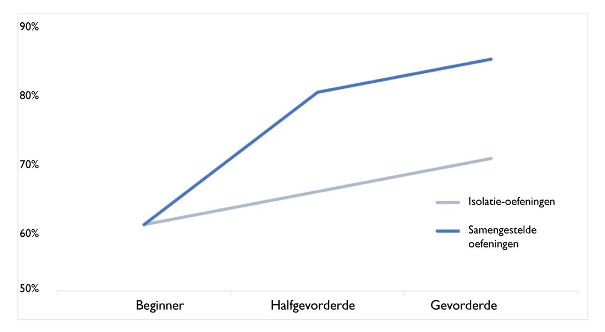 Hoe verder je vordert, hoe hoger de optimale intensiteit wordt en hoe lager de herhalingreeksen zullen worden.