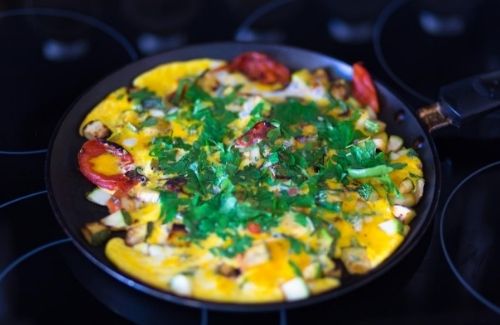Je kunt ook een rijkgevulde groentenomelet maken.